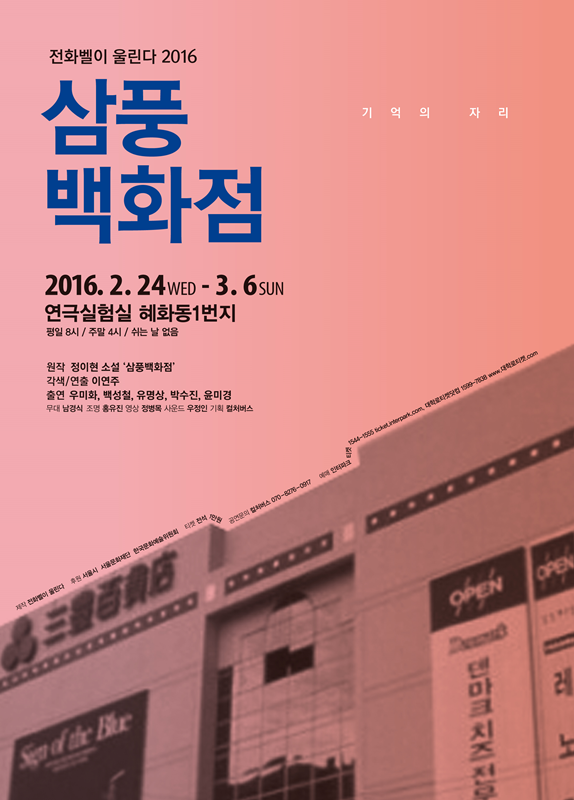'삼풍백화점'은 지난 2015년 8월 세월호 사고 이후 100여명 연극인들의 자발적인 움직임으로 제작된 혜화동1번지 6기동인 기획초청공연 '세월호'를 통해 초연된 바 있다.