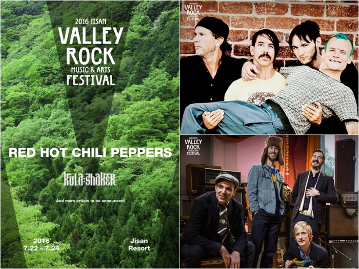 '2016 지산밸리록 뮤직앤드 아츠 페스티벌'은 오는 7월22일부터 24일까지 경기도 이천 지산 리조트에서 열린다.2016 지산밸리록 뮤직앤드 아츠 페스티벌 1차 라인업에 레드 핫 칠리 페퍼스(오른쪽 위)와 쿨라 셰이커(오른쪽 아래)가 포함됐다. 2016 지산밸리록 뮤직앤드 아츠 페스티벌 포스터(왼쪽). <사진제공=CJ E&M>