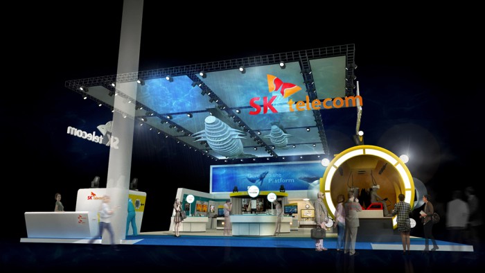 SK텔레콤은 604㎡ 규모의 기업 전시관을 마련하고, ‘플랫폼에 뛰어들다(Dive into the Platform)’를 주제로 △생활가치 플랫폼 △미디어 플랫폼 △IoT플랫폼 △5G 기반기술 등 새로운 서비스 및 기술을 대거 선보인다.