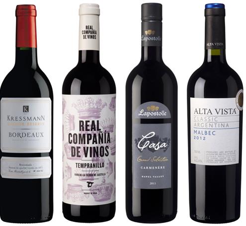 추천 와인은 '그랑 리저브 보르도 레드'와 '레알 꼼빠니아 뗌쁘라니요', '라포스톨 까사 까르메네르', '알타비스타 클래식 말벡' 등이다.