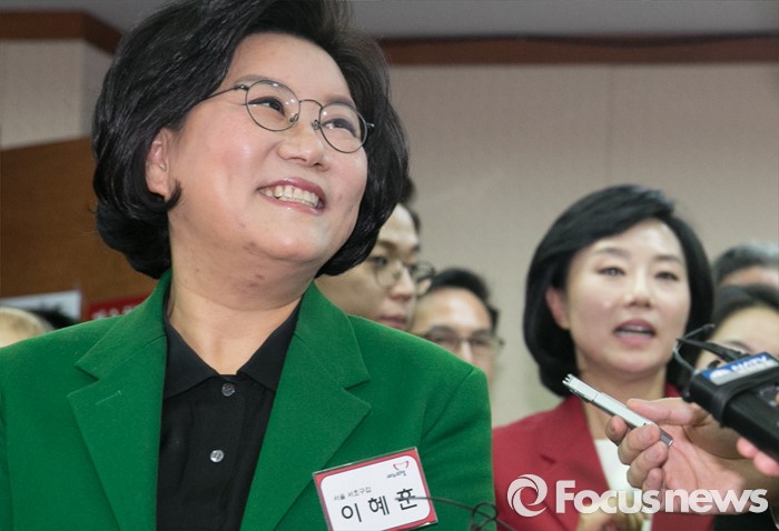 서울 서초갑에 출사표를 던진 이혜훈 전 새누리당 의원과 조윤선 전 청와대 정무수석은 22일 여의도 당사에서 진행된 공천신청자 면접을 마친 후 공통질문에 대해 설명하며 이같이 밝혔다. 두 사람은 상대 후보의 장점을 말하라는 질문에 각각 외모와 적극성을 꼽았다고 답했다.