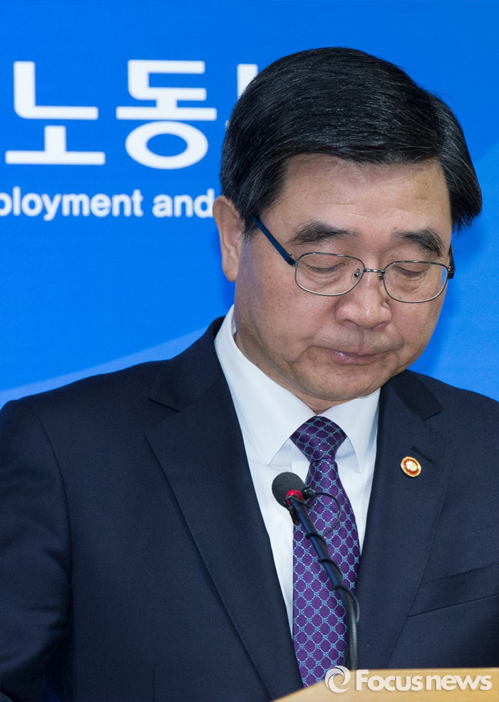 이기권 고용부 장관은 "정부는 흔들림 없이 노사정대타협을 충실히 이행해 나갈 것"이라며 "각 부처는 긴밀한 협업을 통해 청년고용 확대, 원·하청 상생 협력 강화, 임금체계 개편 등 대타협의 핵심과제들을 차질없이 추진할 것"이라고 말했다.(세종=포커스뉴스) 이기권 고용노동부장관이 23일 오전 세종시 정부세종청사 보건복지부 공용브리핑룸에서 임시국회에서 노동개혁 4대입법 처리를 호소하고 있다. 2016.02.23 김기태 기자