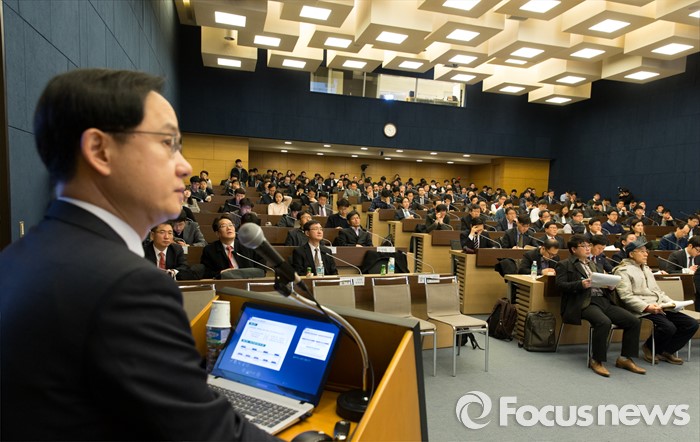 이관섭 산업부 1차관은 "우리 산업이 지속적인 경쟁력을 확보하려면 기업들 스스로가 보다 과감하고 선제적인 사업재편 노력을 기울여야 한다"며 "기활법을 통해 보다 많은 기업이 성장해 경쟁력을 한층 높여나갈 수 있길 바란다"고 강조했다.(서울=포커스뉴스) 23일 오전 서울 중구 대한상공회의소에서 경제7단체 부회장과 산업부, 국토부, 금융위 등 관계부처 및 기업 관계자들이 기업활력제고특별법 민관합동 설명회에 참석해 강성천 산업부 산업정책관의 기업활력법 주요내용 발표를 경청하고 있다. 2016.02.23 김인철 기자