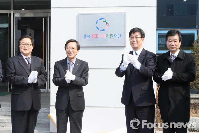 한편 지난해 2월 설립된 충북창조경제혁신센터는 화장품, 바이오, 친환경 에너지관련 기업 중 기술력이 뛰어난 우수기업을 발굴·지원해 이들의 성장을 이끌어 가고 있다.설문식 충청북도 정무부지사(우측에서 두번째), 충북창조경제지원재단 이천구 이사장(좌측에서 두번째), 이의영 충청북도 도의원(우측에서 첫번째), 윤준원 충북창조경제혁신센터장(좌측에서 첫번째)이 은 23일 충북오창의 충북창조경제혁신센터에서 열린 재단 설립 현판식 행사에서 기념촬영을 하고 있다. <사진제공=LG생활건강>