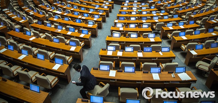 (서울=포커스뉴스) 23일 오후 서울 여의도 국회 본회의장에서 김광진 더불어민주당 의원이 테러방지법 본회의 의결을 막기 위해 무제한토론을 시작한 가운데 윤영석 새누리당 의원이 본회의장을 떠나고 있다.