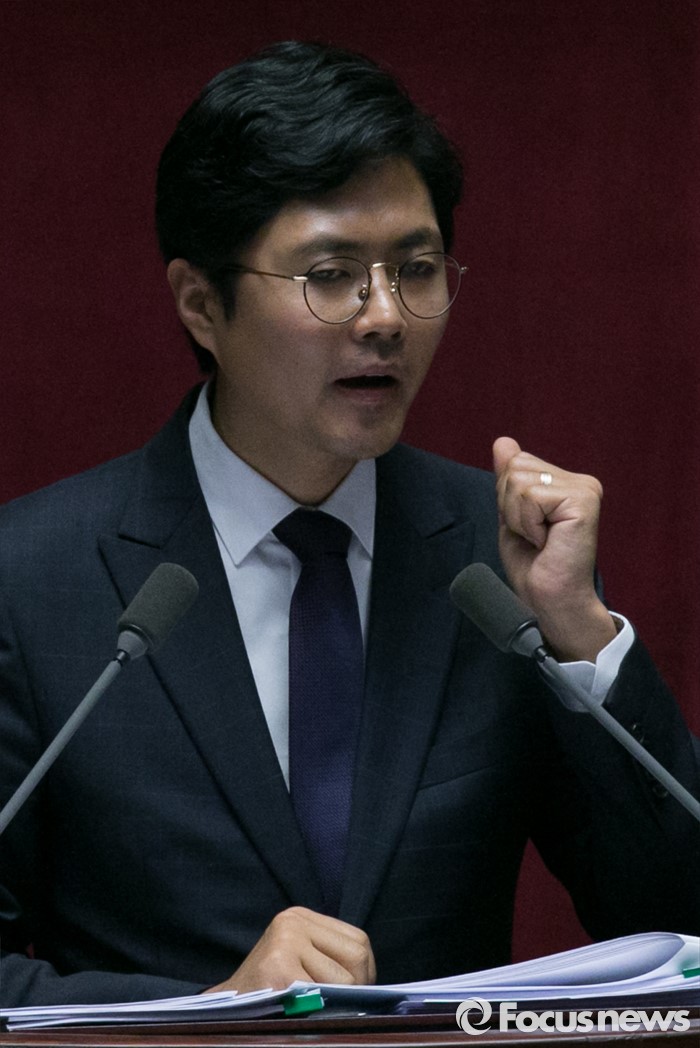 (서울=포커스뉴스) 김광진 더불어민주당 의원이 23일 오후 서울 여의도 국회 본회의장에서 테러방지법과 관련해, 무제한 토론을 하고 있다.