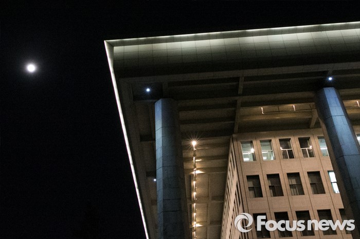 (서울=포커스뉴스) 23일 오후 서울 여의도 국회 하늘 위로 보름달이 떠있다. 이날 국회 본회의에서는 테러방지법과 관련해 야당 의원들의 무제한 토론이 벌어졌다.