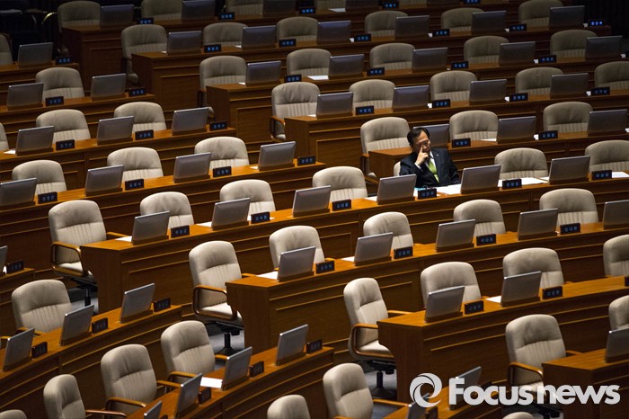 (서울=포커스뉴스) 문병호 국민의당 의원이 23일 오후 서울 여의도 국회 본회의장에서 테러방지법과 관련, 김광진 더불어민주당 의원이 무제한 토론을 하는 동안 생각에 잠겨 있다. 문 의원은 김광진 의원의 토론이 끝난 후 두번째 주자로 필리버스터에 나섰다.