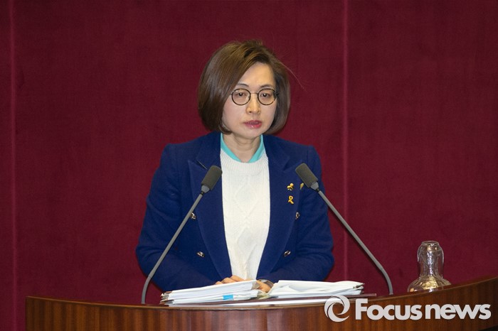 (서울=포커스뉴스) 은수미 더불어민주당 의원이 24일 오전 서울 여의도 국회 본회의장에서 테러방지법과 관련해, 무제한 토론을 하고 있다.