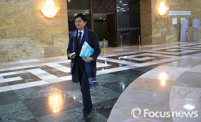 (서울=포커스뉴스) 5시간 33분간 이어진 필리버스터를 끝낸 김광진 더불어민주당 의원이 24일 오전 서울 여의도 국회를 나서고 있다.