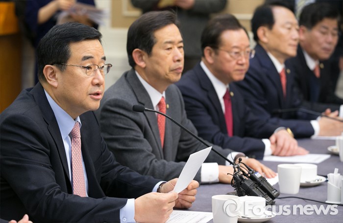 (서울=포커스뉴스) 24일 오전 서울 여의도 국회 귀빈식당에서 열린 쌀 수급 안정을 위한 당정협의에 참석한 김정훈 새누리당 정책위의장이 모두발언을 하고 있다.