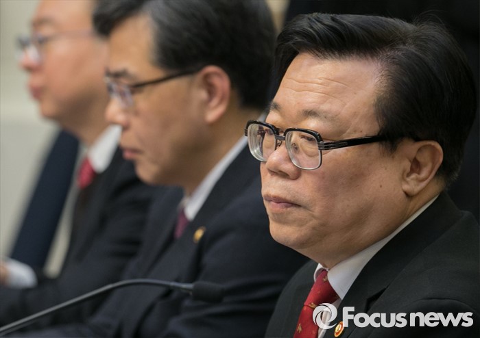 (서울=포커스뉴스) 24일 오전 서울 여의도 국회 귀빈식당에서 열린 쌀 수급 안정을 위한 당정협의에 참석한 이동필 농림축산식품부 장관이 김정훈 새누리당 정책위의장의 모두발언을 듣고 있다.