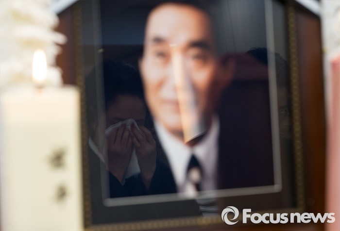 (서울=포커스뉴스) 24일 오전 서울 서초구 서울성모병원에서 故 이기택 전 민주당 총재의 발인 예배에 참석한 유가족들이 눈물을 흘리고 있다.