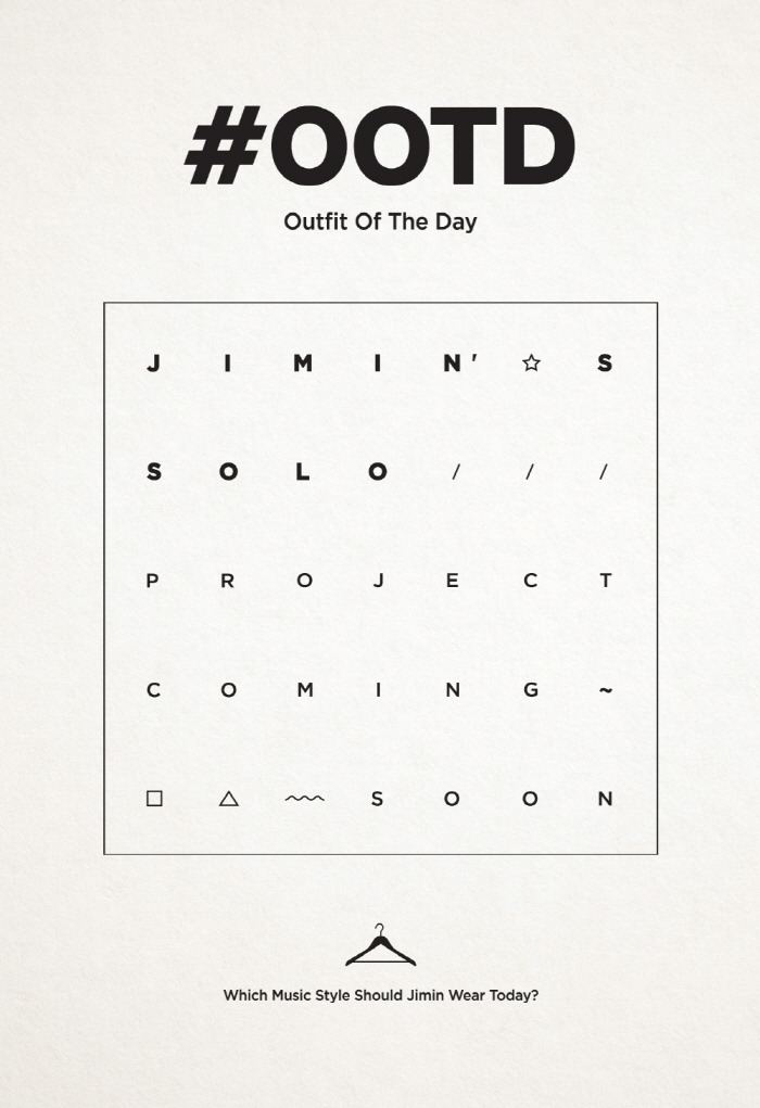 지민의 솔로 프로젝트인 ‘#OOTD’는 SNS(사회관계망서비스)에 그날 입은 옷을 게시할 때 사용하는 해시태그에서 착안한 프로젝트다. 다양한 데일리 룩을 공유하는 SNS 사용자들처럼 지민 역시 ‘#OOTD’ 프로젝트를 통해 지민의 색깔이 담긴 다양한 음악을 선보일 예정이다.