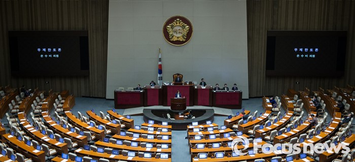 (서울=포커스뉴스) 더불어민주당 김광진 의원의 5시간32분을 깨고, 7시간째 필리버스터를 이어가고 있는 두 번째 필리버스터 주자 은수미 더불어민주당 의원이 24일 오전 서울 여의도 국회 본회의장에서 테러방지법과 관련해 무제한 토론을 하고 있다.