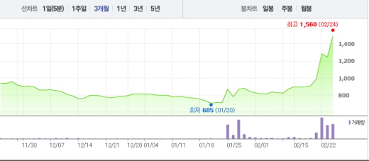 지코는 이날 오전 10시6분 전일 대비 240원(19.28%) 오른 1485원에 거래되고 있다. 52주 최고가(1350원)를 경신한 상황이다.
