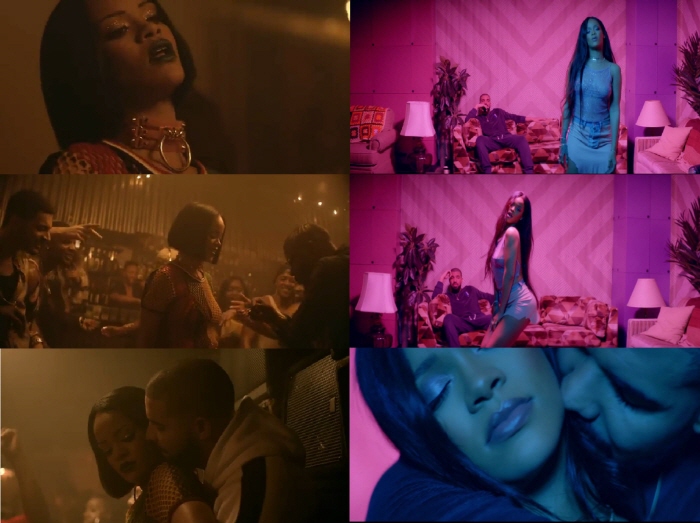 첫번째 버전은 리아나의 화려한 패션과 뇌쇄적인 매력이 한껏 발산된 영상이다. 리아나와 드레이크는 물론 댄서들이 등장해 화려하면서도 다소 선정적인 트워킹 댄스를 선보여 시선을 사로잡는다. 바로 이어지는 두 번째 버전 영상에는 리아나와 드레이크만 출연해 앞선 버전과는 또다른 느낌을 전한다.팝스타 리아나가 새 앨범 '안티'의 신곡 '워크'로 빌보드 싱글차트 1위에 올랐다. 사진은 '워크' 뮤직비디오 캡처 모음. <사진출처=리아나 '워크' 뮤직비디오 캡처>