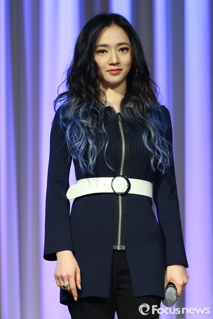 (서울=포커스뉴스) 24일 오전 서울 강남구 리버사이드 호텔에서 열린 걸그룹 레이디스 코드의 싱글앨범 '미스터리'(MYST3RY) 발표 쇼케이스에 참석한 멤버 소정이 포토타임을 갖고 있다.