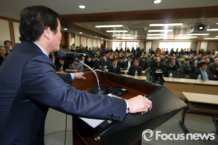 (서울=포커스뉴스) 정기섭 개성공단기업협회장이 24일 오전 서울 여의도 중소기업중앙회에서 열린 개성공단 기업 비상대책위원회 총회에 참석해 인사말을 하고 있다.