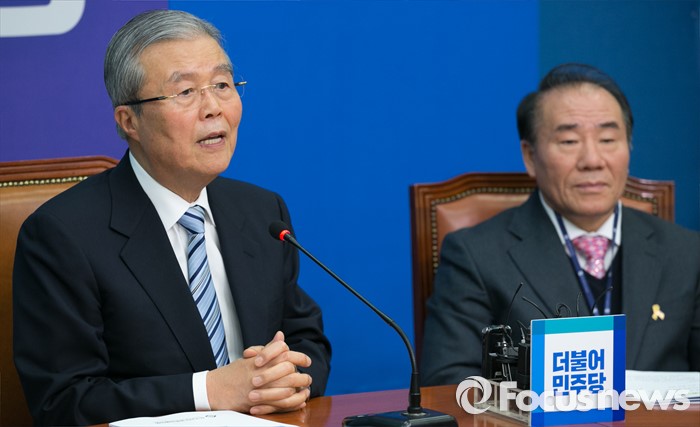 (서울=포커스뉴스) 김종인(왼쪽) 더불어민주당 비대위 대표가 24일 오전 서울 여의도 국회를 방문한 장휘국 전국시도교육감협의회장 등 교육감들과 간담회를 하고 있다.