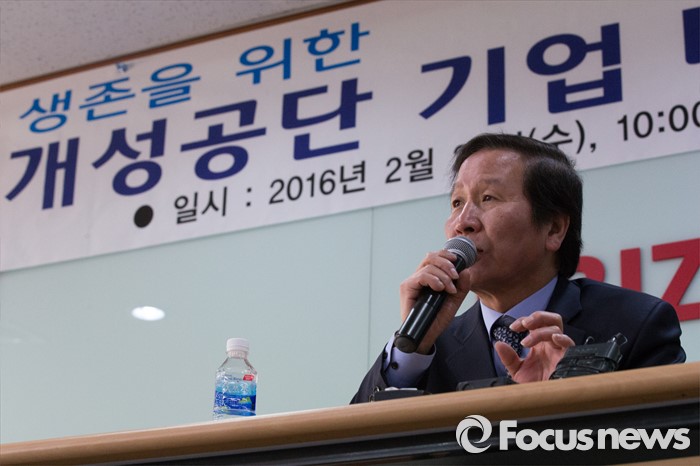 (서울=포커스뉴스) 정기섭 개성공단기업협회장이 24일 오전 서울 여의도 중소기업중앙회에서 열린 개성공단 기업 비상대책위원회 총회에 참석해 질문에 답하고 있다.
