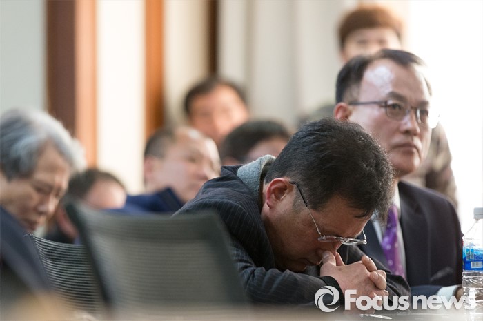 (서울=포커스뉴스) 24일 오전 서울 여의도 중소기업중앙회에서 열린 개성공단 기업 비상대책위원회 총회에서 입주기업 관계자들이 침통한 표정을 짓고 있다.