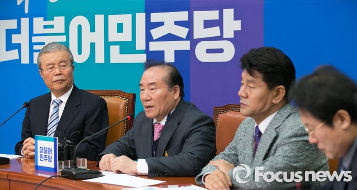 (서울=포커스뉴스) 장휘국 전국시도교육감협의회장이 24일 오전 서울 여의도 국회를 방문해 김종인 더불어민주당 비대위 대표와의 간담회에서 인사말을 하고 있다. 왼쪽부터 김 대표, 장 회장, 이청연 인천시교육감, 조희연 서울시교육감.