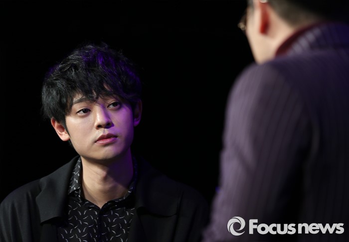 (서울=포커스뉴스) 24일 오후 서울 마포구 제일라아트홀에서 가수 정준영이 솔로앨범 '공감' 발표 쇼케이스에 참석해 진행자에게 질문을 받고 있다.