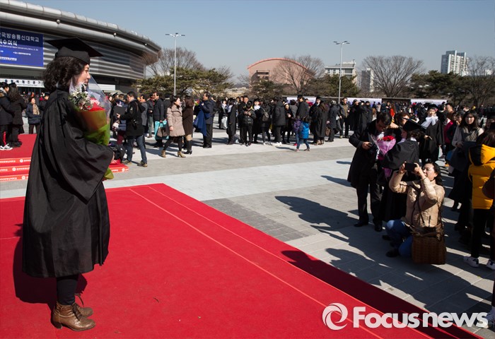 (서울=포커스뉴스) 24일 오후 서울 송파구 올림픽체조경기장에서 열린 '한국방송통신대학교 2015학년도 학위수여식'에 참석한 졸업생이 기념사진을 찍고 있다.