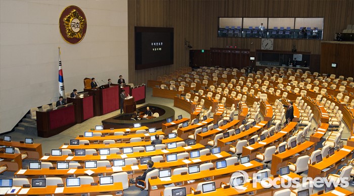 (서울=포커스뉴스) 테러방지법 직권상정에 반발해 야당의 무제한 토론(필리버스터)이 진행되고 있는 24일 오후 서울 여의도 국회 본회의장에서 토론을 진행중인 박원석 정의당 의원을 향해 조원진 새누리당 원내수석부대표가 항의를 하고 있다.