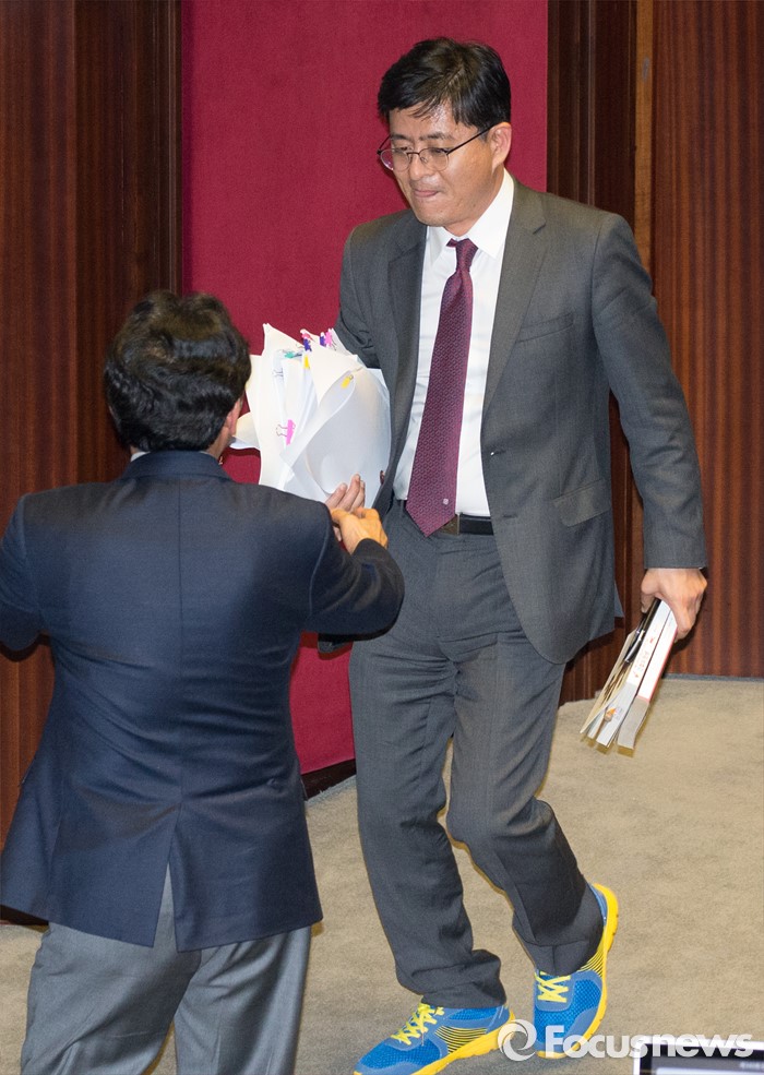 (서울=포커스뉴스) 테러방지법 직권상정에 반발해 야당의 무제한 토론(필리버스터)이 진행되고 있는 24일 오후 서울 여의도 국회 본회의장에서 박원석 정의당 의원이 발언을 마치고 단상에서 내려오고 있다.