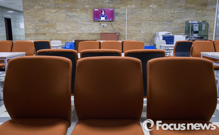 (서울=포커스뉴스) 테러방지법 직권상정에 반발해 야당의 무제한 토론(필리버스터)이 진행되고 있는 25일 새벽 서울 여의도 국회 본회의장에서 최민희 더불어민주당 의원이 발언을 하고 있다.