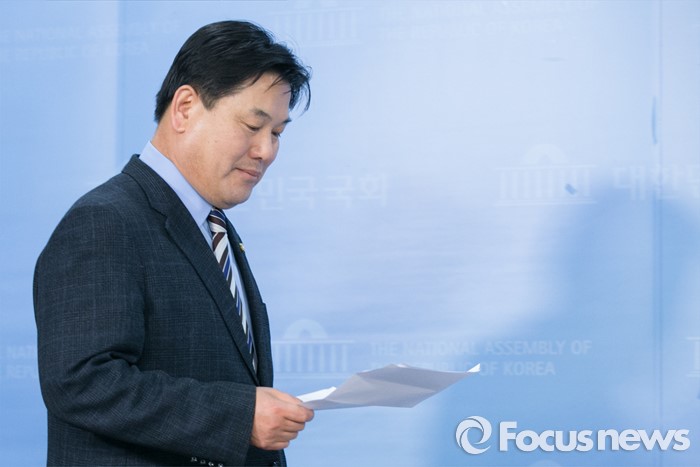 (서울=포커스뉴스) 1차 컷오프 대상자인 홍의락 더불어민주당 의원이 25일 오전 서울 여의도 국회 정론관에서 거취 표명 기자회견을 위해 단상에 오르고 있다.