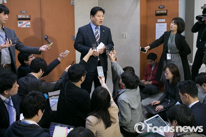 (서울=포커스뉴스) 1차 컷오프 대상자인 홍의락 더불어민주당 의원이 25일 오전 서울 여의도 국회 정론관에서 거취 표명 기자회견을 마치고 기자들의 질문에 답변하고 있다.
