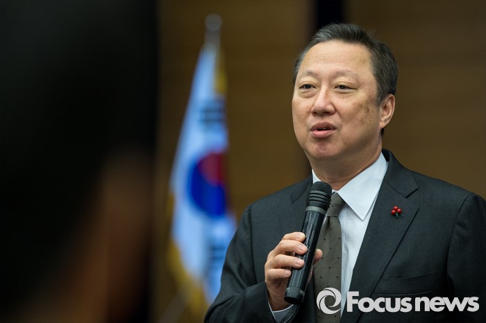 한편 이날 간담회에는 박용만 대한상의 회장을 비롯해 조성제 부산상의 회장, 진영환 대구상의 회장, 이강신 인천상의 회장, 김상열 광주상의 회장 등 전국 상공업계를 대표하는 60여명의 상의 회장단이 참석했으며, 황 총리와 전국상의 회장단은 경제활성화를 위해 비상한 노력과 협력을 다하기로 다짐했다.(서울=포커스뉴스) 박용만 대한상공회의소 회장. 2016.01.04 강진형 기자