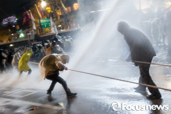 그는 같은 해 4월 16일과 18일에 열린 세월호 집회, 5월 1일에 열린 민노총 1차 총파업, 9월 19일 민노총 결의대회 등에서 신고장소를 벗어나 교통방해를 한 혐의 등도 받고 있다.지난해 11월 14일 서울 종로구 세종대로에서 열린 '민중총궐기대회'에서 경찰이 시위대를 향해 물대포를 쏘고 있다. 김흥구 기자