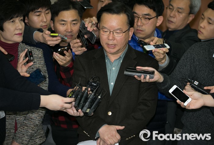 (서울=포커스뉴스) 김부겸 더불어민주당 대구 수성갑 예비후보가 25일 오후 서울 여의도 국회 정론관에서 컷오프에 반발해 탈당한 홍의락 의원에 대한 공천 배제 조치 취소를 요구하는 기자회견을 마친 뒤 취재진 질문에 답하고 있다. 홍 의원은 대구 북구을에 출마를 준비해왔다.