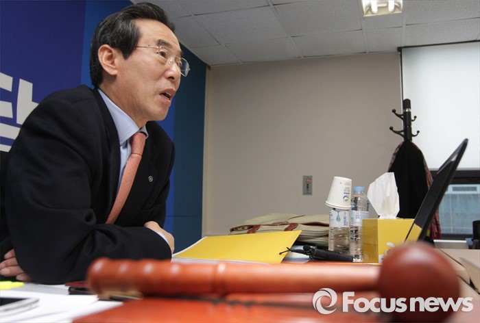 (서울=포커스뉴스) 25일 오전 서울 여의도 더불어민주당사에서 열린 20대 총선 공천 신청자 면접심사에 참석한 홍창선 공천관리위원장 등 위원들이 박영순, 고재일, 정현태 대전 대덕 예비후보에 대한 심사를 하고 있다.