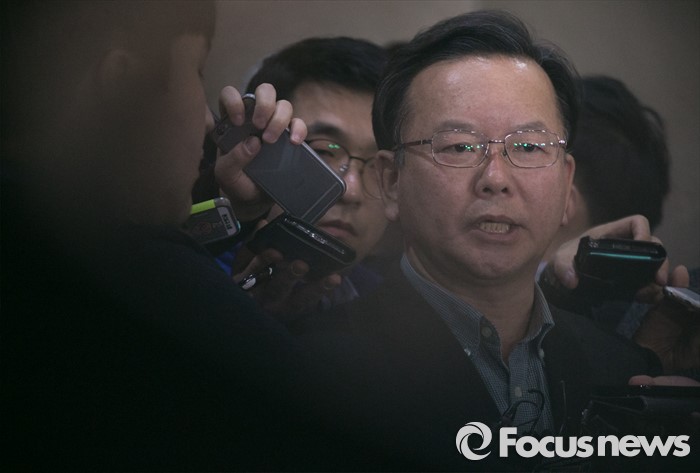 (서울=포커스뉴스) 김부겸 더불어민주당 대구 수성갑 예비후보가 25일 오후 서울 여의도 국회 정론관에서 컷오프에 반발해 탈당한 홍의락 의원에 대한 공천 배제 조치 취소를 요구하는 기자회견을 마친 뒤 취재진 질문에 답하고 있다. 홍 의원은 대구 북구을에 출마를 준비해왔다.