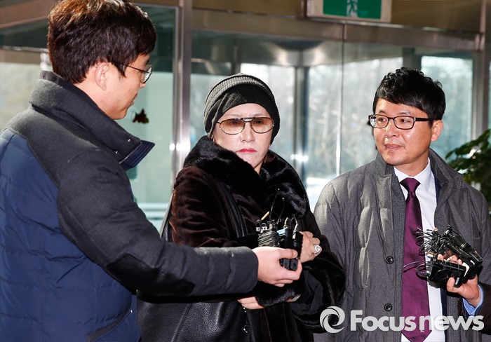 (인천=포커스뉴스) 사기 및 폭행 혐의로 고소장이 접수된 '무기 로비스트' 린다 김(본명 김귀옥) 씨가 25일 오후 인천 중구 중부경찰서에 출석하기 전 취재진의 질문을 듣고 있다.