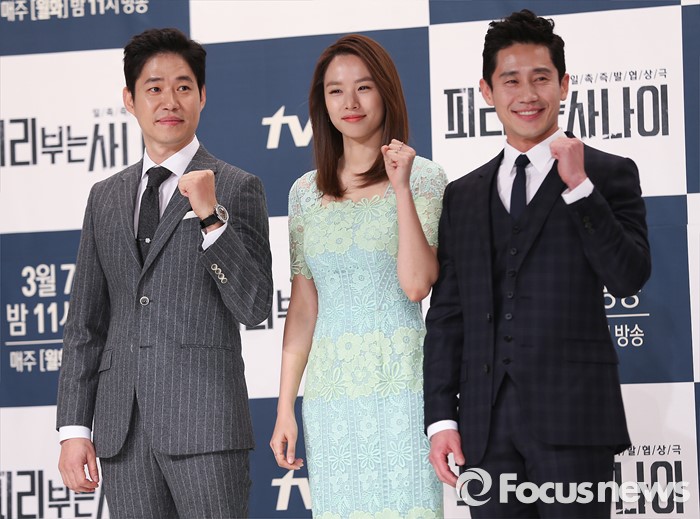 (서울=포커스뉴스) 25일 오후 서울 영등포구 타임스퀘어 아모리스홀에서 열린 tvN 월화드라마 '피리부는 사나이' 제작발표회에 참석한 배우 유준상(왼쪽부터), 조윤희, 신하균이 포토타임을 갖고 있다.
