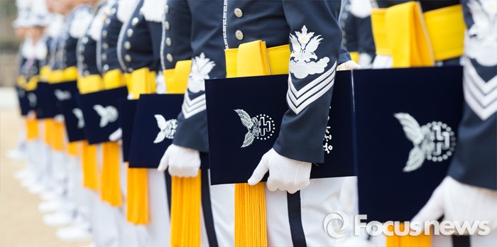 (청주=포커스뉴스) 25일 오후 충북 청주시 공군사관학교 연병장에서 열린 제64기 공군사관학교 졸업식에서 졸업생도들이졸업장을 들고 도열해 있다.