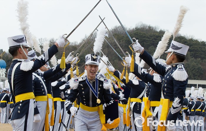 (청주=포커스뉴스) 25일 오후 충북 청주시 공군사관학교 연병장에서 열린 제64기 공군사관학교 졸업식에서 졸업생도들이 졸업의식을 하고 있다.