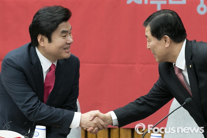 | △ 악수하는 원유철·황진하 |