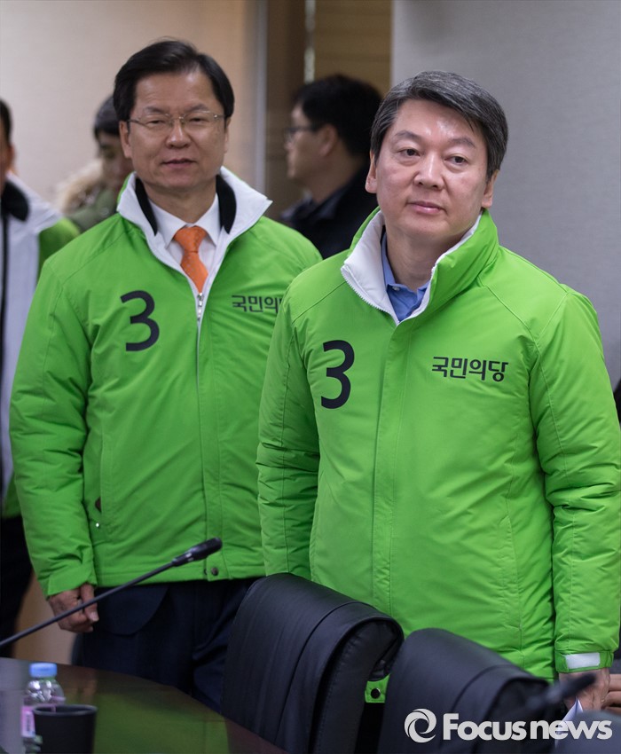 (서울=포커스뉴스) 국민의당 안철수(오른쪽), 천정배 상임공동 대표가 26일 오전 서울 마포국 국민의당 당사에서 열린 최고위원회의에 참석하고 있다.