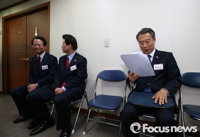 (서울=포커스뉴스) 26일 오전 서울 여의도 새누리당사에서 열린 20대 총선 공천 신청자 면접심사에 참석한 정종섭(오른쪽부터), 손종익 대구 동구갑 예비후보, 류성걸 의원이 대기하고 있다.
