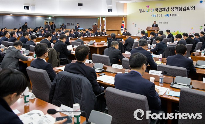 (서울=포커스뉴스) 26일 오후 서울 중구 정부서울청사 별관에서 열린 '2016년 제1회 정부3.0 국민체감 성과점검회의'에 참석한 송희준 정부3.0추진위원장이 격려사를 하고 있다.