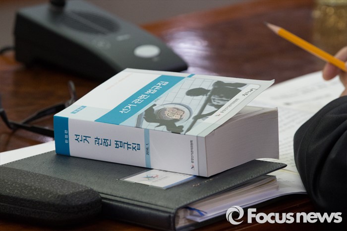 (과천=포커스뉴스) 26일 오후 경기도 과천시 중앙선거관리위원회에서 열린 선거여론조사 공정성 확보 대책회의에서 선거관리위원회 한 관계자의 책상위에 선거 관련 법규집이 놓여있다.