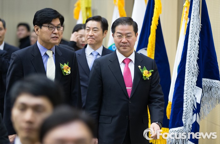 (세종=포커스뉴스) 26일 오후 세종시 정부세종컨벤션센터에서 열린 제4회 국민권익의 날 기념식에서 성영훈(오른쪽) 국민권익위원장이 이춘희 세종시장과 대화하며 행사장으로 입장하고 있다.