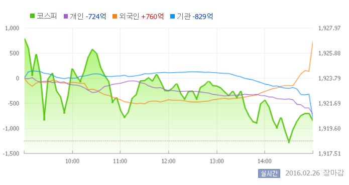 이날 일본 닛케이225지수는 전일 대비 0.3% 상승한 1만6188.41로 마감했다.26일 유가증권시장 <그래픽출처=네이버>
